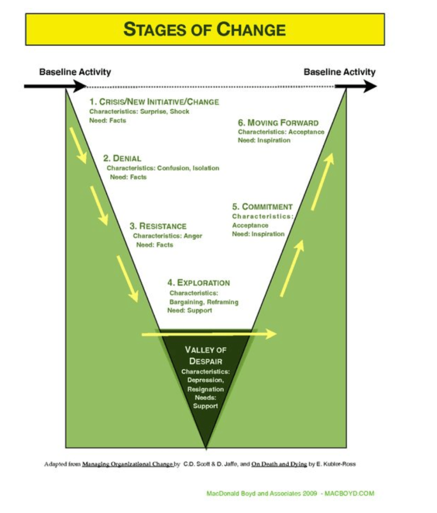 The topic of grief is intimidating. When listing the stages, it is easy to think of the negative instead of the positive. This graphic shows that these is an equal downward and upward trajectory during grief.