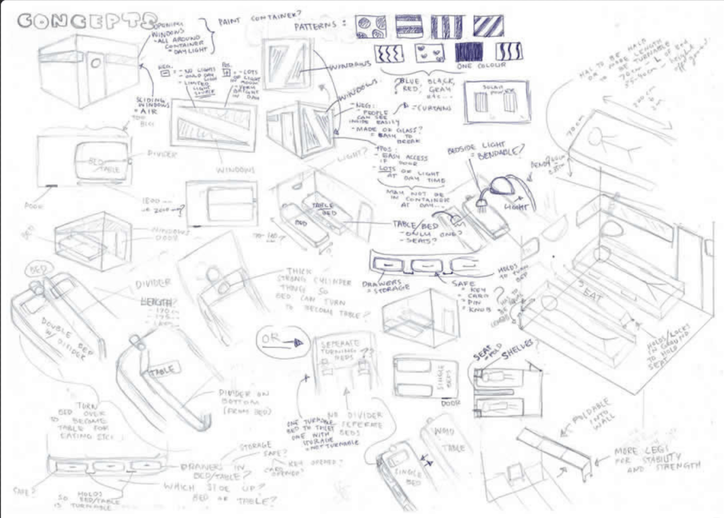 This visual shows the process of designing and sketching of some sort of bedroom. I chose this example to show the progression of though as this person tries to solve the issue of space and placement of the furniture in the bedroom.