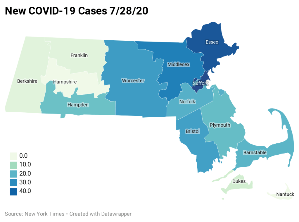 Covid-19 cases have been on the rise ever since the beginning of the year. Fortunately, Massachusetts has seen an incredible decrease in the number of new cases. Instead of in the hundreds, in each county there are only a few dozen new cases reported everyday. To expand more, I could add in the other New England states as well. From there I could expand to the rest of the US and the World.