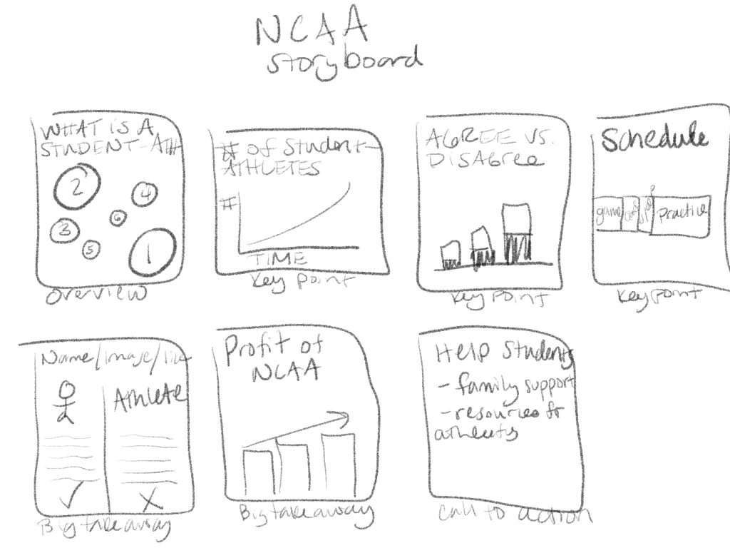 I want to explain to the audience why student-athletes must remain amateurs, how many student-athletes there are, and how many people think they should/ shouldn’t be paid. I will then explain the average schedule for an in-season student-athletes, name/image/ likeness law for students vs. non-students, and how much money the NCAA makes every year. I hope this information enlights the audience to the amount of work these students put in and how they never see a dime of the millions they make their schools ever year. To make this content engaging, I will provide different types of maps and charts for the reader to interact with.