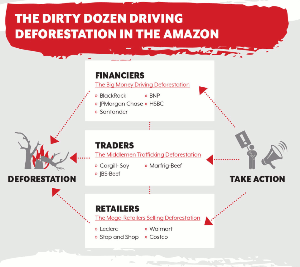Global NGOs: Dirty Dozen Companies Driving Deforestation Must Act Now to Stop the Burning of the World’s Forests. (n.d.). Retrieved October 03, 2020, from https://amazonwatch.org/news/2019/0830-dirty-dozen-companies-driving-deforestation-must-act-now-to-stop-the-burning