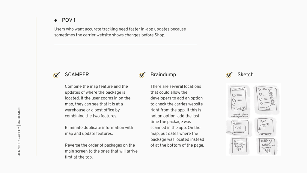 A few weeks ago, I looked at some App Store reviews for some of my favorite apps and created some Point of View, POV, statements based on the feedback. Now, it is time to take those statements and develop some ideas to fix the problems.